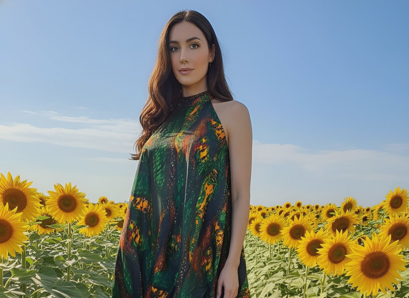 A flame looking fabric, created from the combined colors of blue, brown, yellow, orange, white and black.